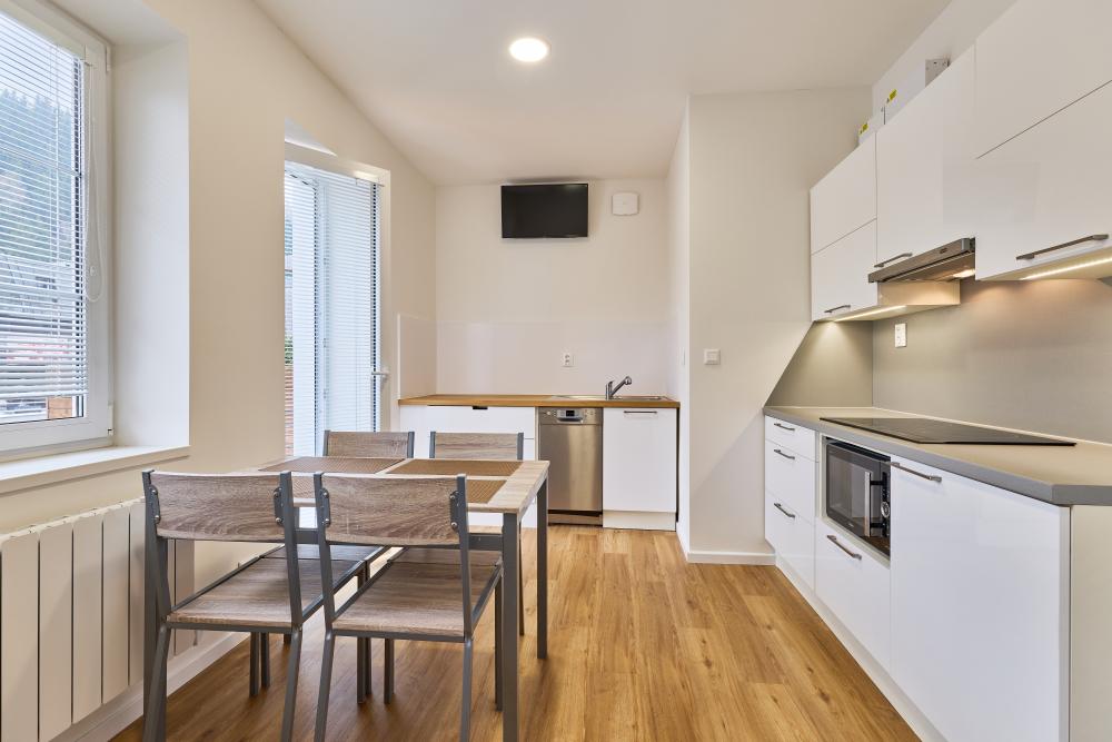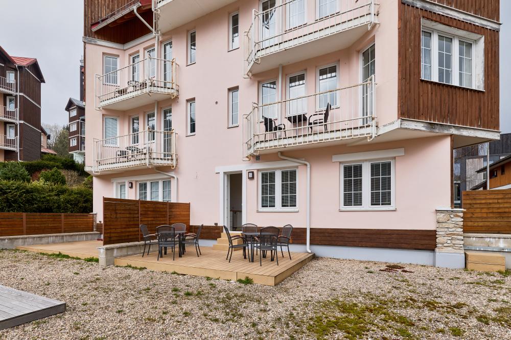 Apartmán je v 1. patře. Vyšší patra jsou dostupná pouze po schodech.